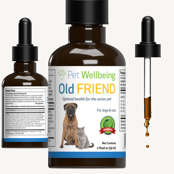 Founded in 2001 and a leader in pet wellness for over 20 years, Pet Wellbeing created Old Friend to bring the wisdom and care of our animal-loving experts to your pet. Our dedicated team of holistic veterinarians combines traditional herbal knowledge with the latest scientific research to craft the best products for your beloved companion and support them well into their golden years. Because when your pet feels their best, your whole family thrives.