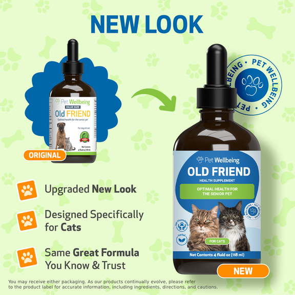 As our feline friends enter their golden years, we naturally look for ways to help them stay comfortable and content. From providing nutritious meals to ensuring they have ample mental and physical stimulation, we aim to support their well-being at every stage. Designed by a holistic veterinarian, Old Friend focuses on helping senior cats maintain their vitality by supporting connective tissue, joint health, immune function, and more as they navigate the normal changes that often come with age. Old Friend is a gentle, effective way to help your cat continue enjoying life.