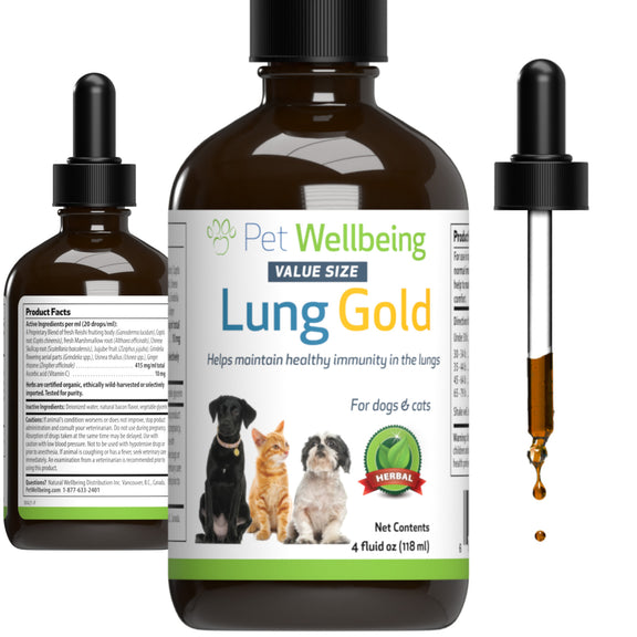 Founded in 2001, Pet Wellbeing created Lung Gold to bring the wisdom and care of our animal-loving experts to your pet. Our dedicated team of holistic veterinarians combines traditional herbal knowledge with the latest scientific research to craft the best products for your beloved companion and support them well into their golden years. When your pet thrives, you thrive too.