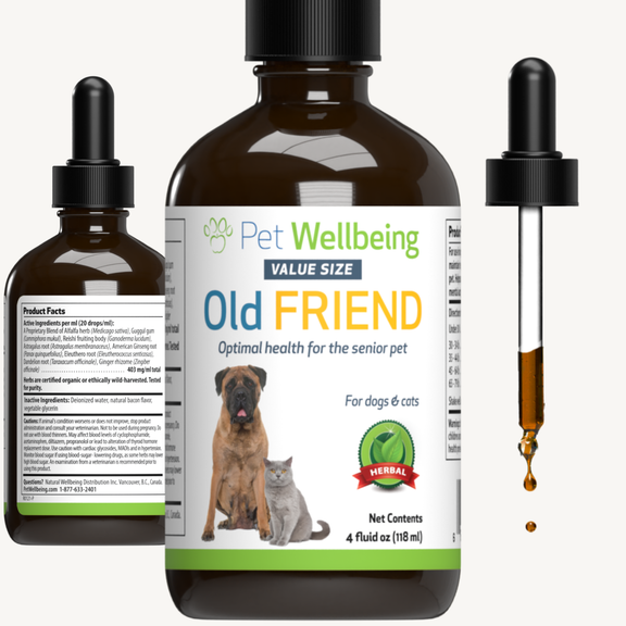 Founded in 2001 and a leader in pet wellness for over 20 years, Pet Wellbeing created Old Friend to bring the wisdom and care of our animal-loving experts to your pet. Our dedicated team of holistic veterinarians combines traditional herbal knowledge with the latest scientific research to craft the best products for your beloved companion and support them well into their golden years. Because when your pet feels their best, your whole family thrives.
